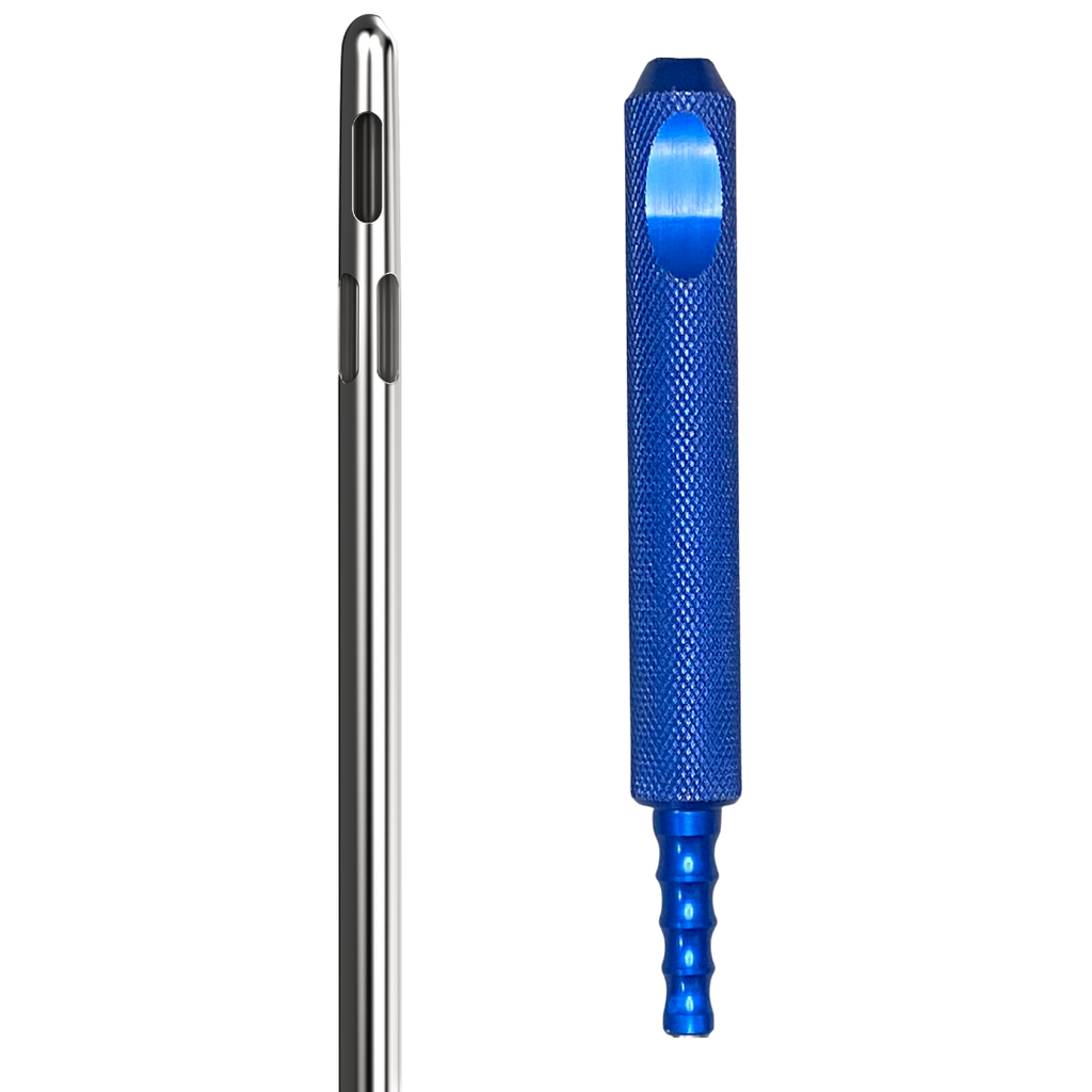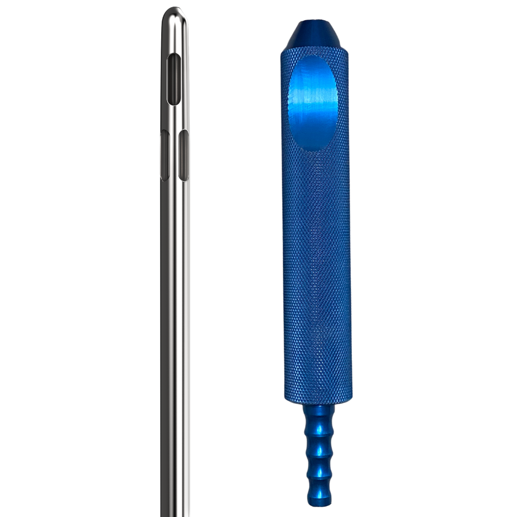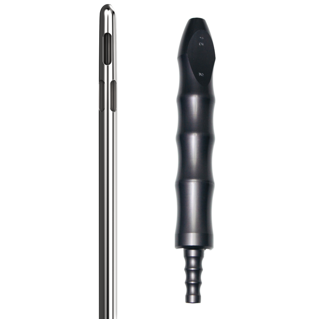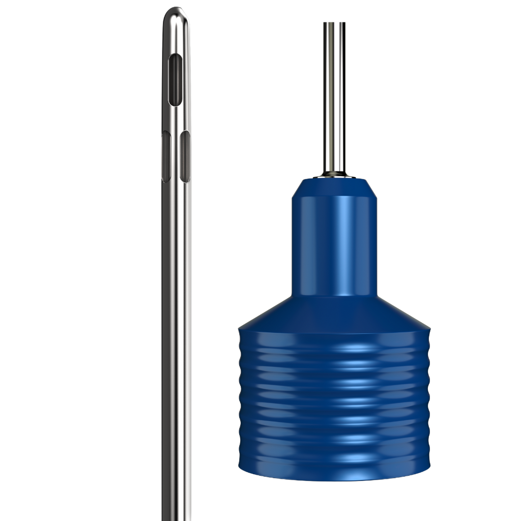 The Lotus contour or knurl aluminum handle option is available in either a 1" or 3/4" diameter. The oversized Toomey 60cc deep blue aluminum hubs have been designed to give a superior fit to the syringe while offering the best performance and trustworthiness. In addition, this cannula is also supplied with a luer-lock large hexagon hub created with stainless steel guaranteeing improved connections for a steady and uninterrupted flow of tissue. We have also added a 7/8" quickscrew hub stainless steel.