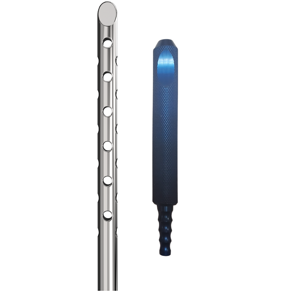 Our diverse range of diameters and lengths ensures that you'll find the perfect fit for any body type or treatment area. Crafted from stainless steel, our cannulas are built to last. Choose between our Lotus contour handle or knurl aluminum handle, available in 1" or 3/4" diameter, for superior grip and aesthetics.