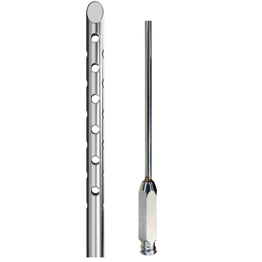 Dremel Medical, your premier destination for liposuction plastic surgery cannulas. Our 24 micro-port wedge tip cannula is the perfect solution for liposuction procedures that require precise fat removal. With its small 1mm ports and specialized wedge tip, this cannula minimizes damage to surrounding tissue while maintaining optimal penetration depth. Manufactured in the United States, it offers outstanding quality and reliability.