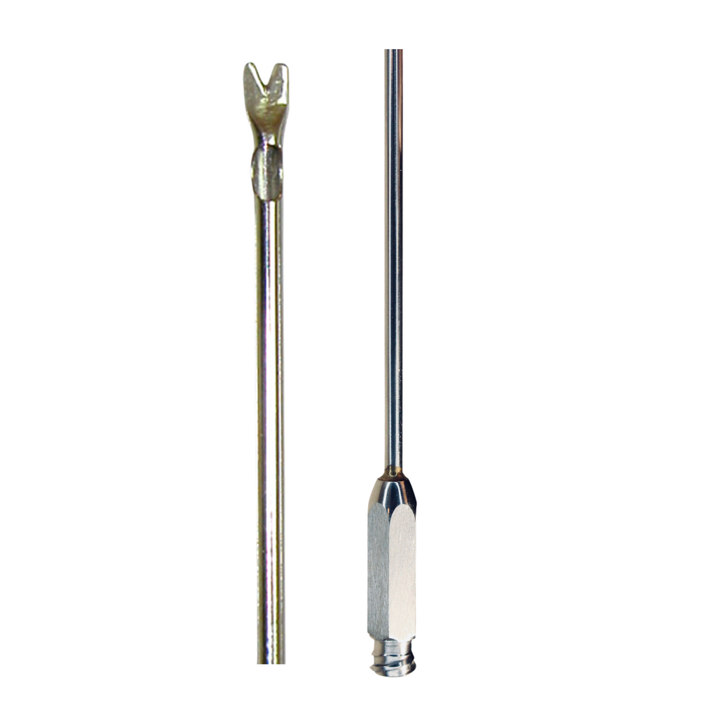 This Micro Injection cannula has a V shaped tip that allows easier movement through scar tissue and fibers. The material used in the cannula is high quality stainless steel and is offered in a variety of lengths and diameters. Additionally, Dremel Medical offers this cannula in different sizes and diameters along with Luer-Lock stainless steel hubs and 60cc Toomey hubs made from aluminum.